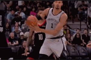 GIF-文班亚马不看人妙传尚帕尼底角三分