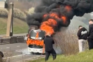 英国国家公路局表示:“沃里克郡境内的M6收费高速公路南行方向,T4(韦福德)至T2(科尔斯希尔)路段因一辆客车起火而封闭。包括沃里克郡消防救援局在内的应急部门已在现场处置,国家公路局交通官员也在现场协助交通管理。”