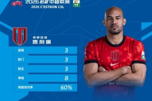 值得一提的是,费利佩本场3次射门3次射正,另外8次争抢成功,传球成功率60%。