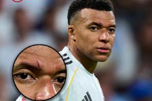 ESPN晒出姆巴佩伤口特写照,眉毛上方明显伤痕。