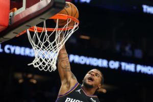 体育资讯4月18日讯 NBA附加赛,太阳上半场以50-45领先勇士。